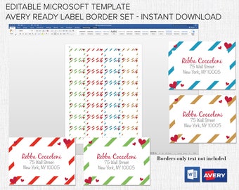 Address Label Borders Editable in Microsoft™ Word, Printable, Avery™ Ready, 1 1/4 x 1 3/4, Valentines set 4 Borders