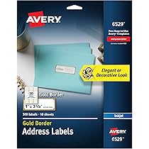 Avery Printable Address Labels, 1" x 2-5/8", Matte White with Gold Border, 300 Blank Mailing Labels (06529)