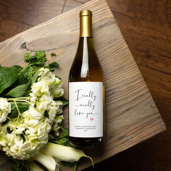 Valentine's Day Wine Labels - Custom Label Shop Look no further than our assortment of Valentine's Day wine label designs. Personalize your label with a unique message for that special someone, and even include your own photo. All labels come with a self-adhesive backing, which means that applying it to your bottle is as easy as peeling and sticking.