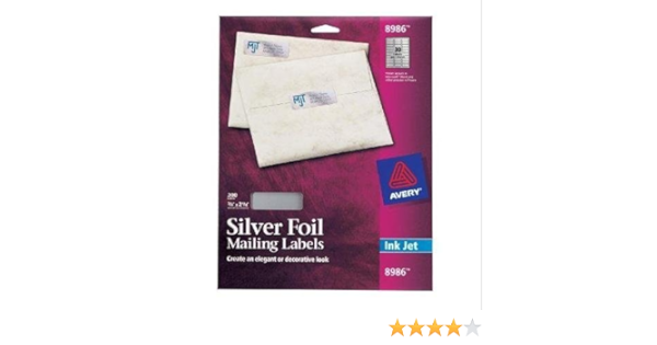 AVE8986 - Avery® Foil Mailing Labels, Inkjet Printers, 0.75 x Avery® AVE8667 $40.47 /PK Avery® AVE8662 $38.65 /PK Product Details Companion Products Reviews These gold or silver foil mailing labels are the office equivalent to putting on a sharp suit or formal gown. Create elegant, decorative labels for invitations or addresses with easy-to-use free templates from Avery® Design & Print.